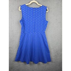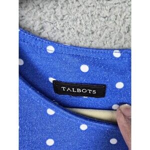 Talbots Dress Womens M Blue White Polka Dot Sleeveless A-Line Fit Flare Swing