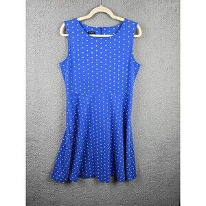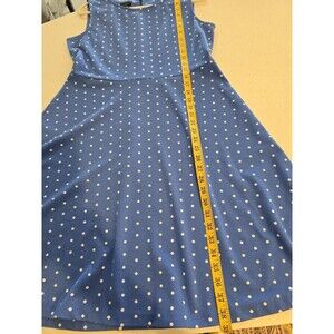 Blue with white polka dots fit and flare swing dress, sleeveless, size M.