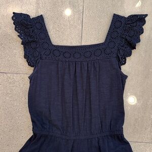 Talbots Blue Dress with Ruffle Sleeves. Cute summer dress that is easy to dress up or down.