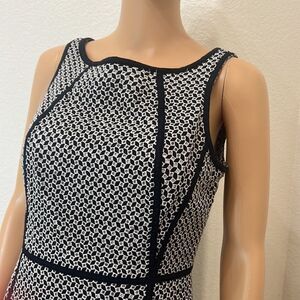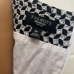 Talbots Dress Size 8 Petite Scoop Neck Sleeveless Black White Slimming Line Midi