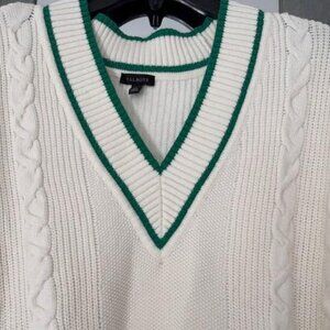 Talbots Drop Shoulder Cable Knit Sweater Vest Preppy Academia Tennis Coastal