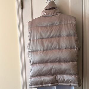 Talbots Duck Down Feather Puffer Vest Women’s Large Silver Metallic High Collar