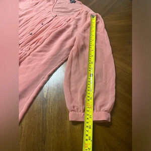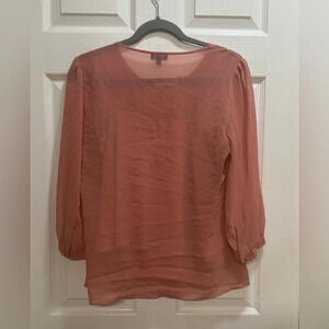 Talbots Dusty Pink Sheer Top with Tank Size 6 Button Up Pleated 3/4 Sleeves