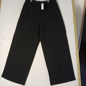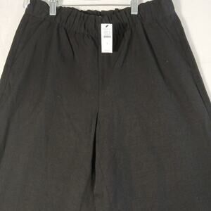 Talbots Easy Cropped Wide Leg Pants NWT Black Size Small Linen Blend Pullon