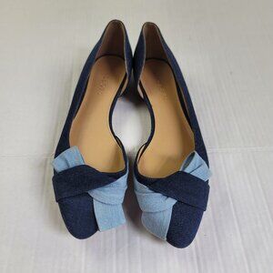 Talbots Edison D'Orsay Side Twist Bow Ballet Flat Two Tone Denim Size 9.5