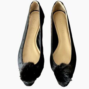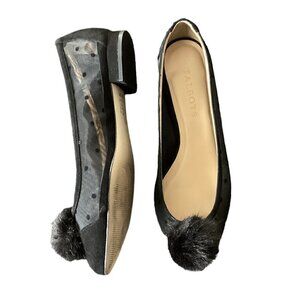 Talbots Edison Faux Fur Pom Pom Mesh Polka Dot Pointed Toe Flats 6.5W #183B