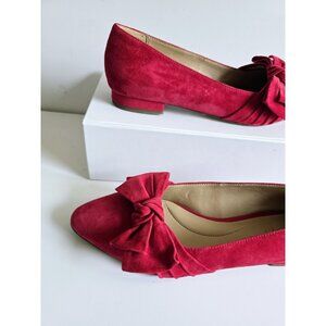 Talbots Edison Red Bow Suede Leather Almont Pointed Toe Ballet Flats Shoes 7