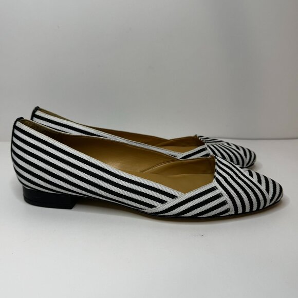Talbots Edison Womens Black/White Striped Ribbon Pointed Flats Size 6.5