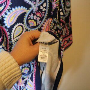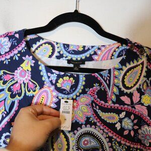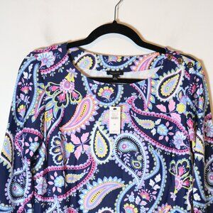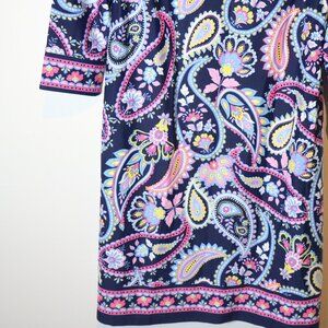 Talbots Effortless Jersey Shift Dress Blossom Paisley Medium Blue Stretch Preppy