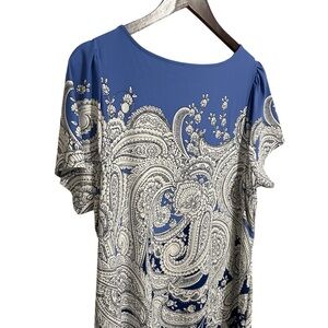 Talbots Effortless Jersey Shift Paisley Blue and White Midi Dress Size 1XP