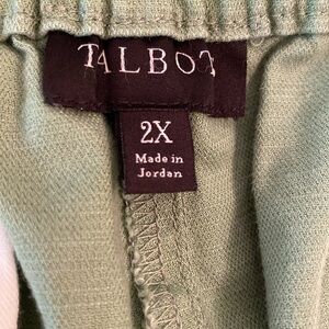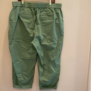 Talbots Elasticated Drawstring Signature Green Crop Capri Cuff Stretch Pants 2X