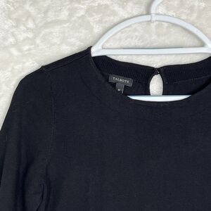 Pre- owned- excellent condition. Talbots Elegant, most comfortable Black Carrier Blouse. Womens Size M, feet size S and M. Soft breathable Cotton Blend, fine Knitted. Classy style. Button on the back of the neck line. See all photos for measurements, compare them to your current size top, make sure it fits you right to avoid returning. Thank you and happy shopping.