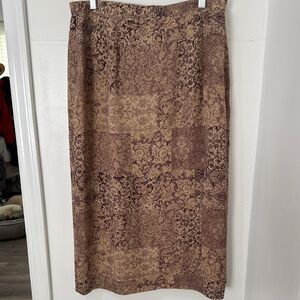 Talbots Elegant Brown Patterned Silk Midi Skirt Size 14