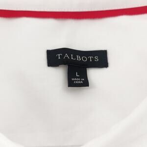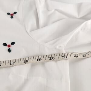 Talbots Embellished Holly Berry Button Front Shirt Womens Large White Beaded Top