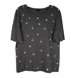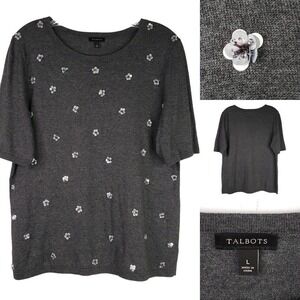 Talbots Embellished Sequin Floral Novelty Sweater Women Large Dark Gray Cotton