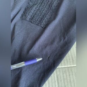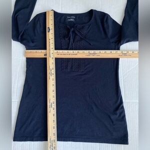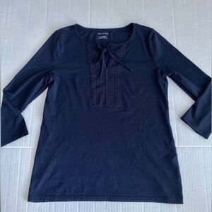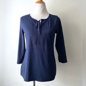 Talbots Embroidered 3/4 Sleeve Top Keyhole Tie Navy Cotton Blend size S
