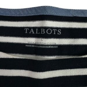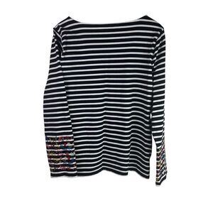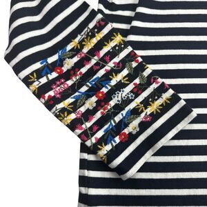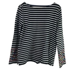 Talbots Embroidered Bateau Neck Tee size Large Fleur Stripe Blue White