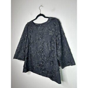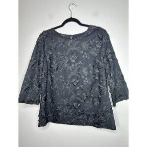 Talbots Embroidered Black Floral Blouse Womens Top Size 14 NWT
