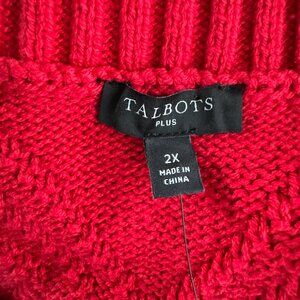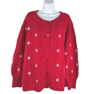 Talbots Embroidered Bobble Cardigan Sweater 2X Red White Snowflake NWT CJ-2048