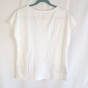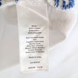 This Talbots Embroidered Boho Short Sleeve Blouse in size Small is in excellent condition with no defects, flaws, or stains. The top features a white cotton fabric with beautiful blue embroidery for a classic, relaxed look. Made from 100% cotton, it’s lightweight, breathable, and perfect for casual wear, vacations, or warm weather.