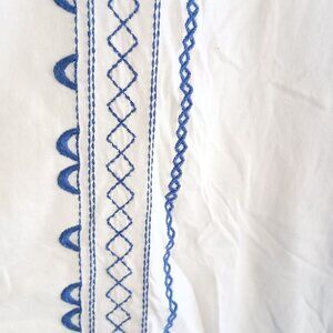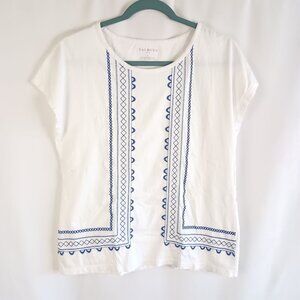 Talbots Embroidered Boho Blouse Top White Blue Cotton Short Sleeve Women’s S