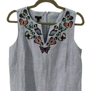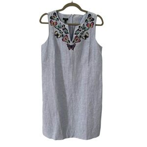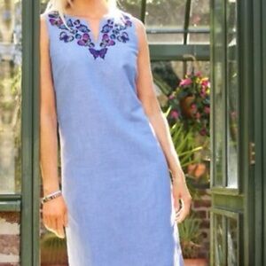 Talbots Embroidered Butterfly Linen Cotton Blend Shift Dress Blue Size 8
