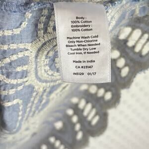 Talbots Embroidered Eyelet Blouse M MP PM Blue White Off Shoulder Boho Coastal