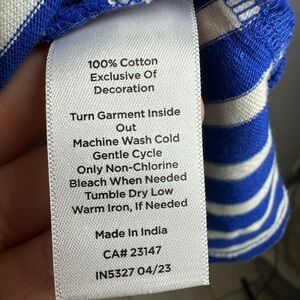 Talbots Embroidered Frenchie Dogs Royal Blue and White Striped Cotton Top sz L