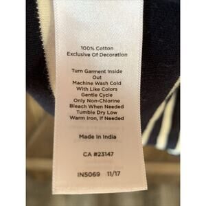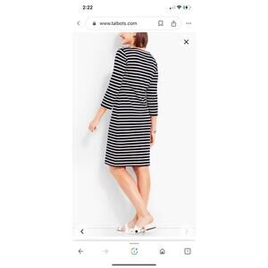 Very cute Talbots striped shirt dress. Dress is navy and white with a pink embroidered neckline. 100% cotton. Good condition.
