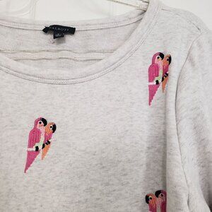 Talbots Womens Embroidered Parrots Tropical Birds Pullover Sweatshirt Size Small