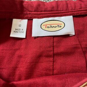 The Talbots Embroidered Pleated Knee Length Skirt is a vintage women's size 12 red boho piece perfect for casual occasions. Made from comfortable cotton material, this A-line skirt features a floral pattern and a zip closure. With a knee-length design, this skirt adds a touch of bohemian style to any wardrobe, making it a versatile and fashionable addition to one's closet.