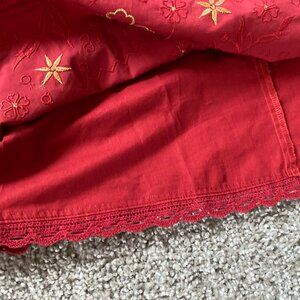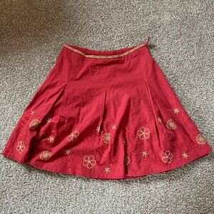 Talbots Embroidered Pleated Knee Length Skirt Vintage Women's Sz 12 Red Boho