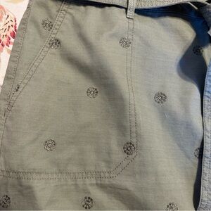 Camo green with embroidery and lots of pockets. this cotton makes a great option for outdoor activities.