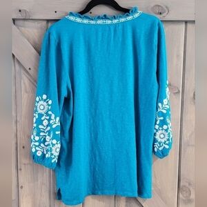 Talbots Embroidered Sleeve Open V Neck Tunic Size XLP