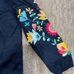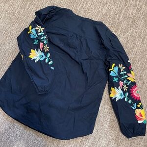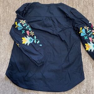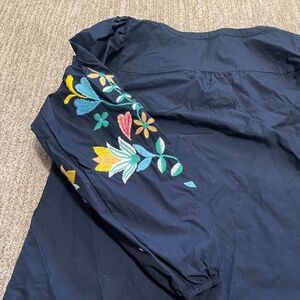 Talbots Embroidered Sleeve Poplin Top - Navy, Size Medium