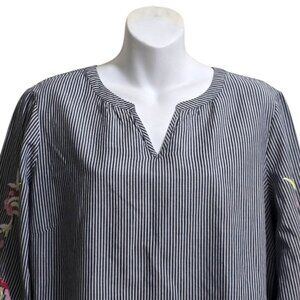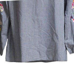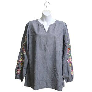 Talbots Embroidered Stripe Popover Shirt Sz L