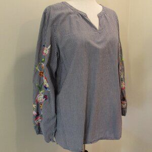 Talbots Embroidered Stripe Popover Shirt, size XL.
