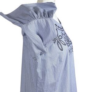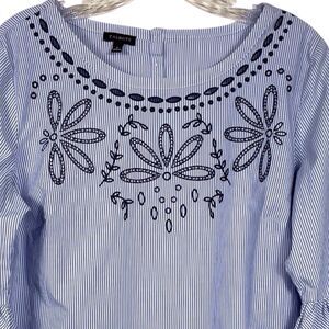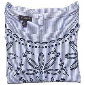 TALBOTS Embroidered Striped Blouse – Size L – Blue & White – EUC