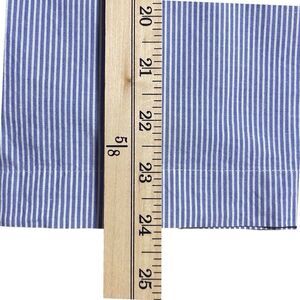 This striped Talbots blouse blends classic tailoring with a subtle boho influence. The navy embroidery across the neckline provides a focal point without overwhelming the clean pinstripe pattern, while the bell sleeves add movement and a relaxed, feminine shape. A polished option with a soft, expressive finish.