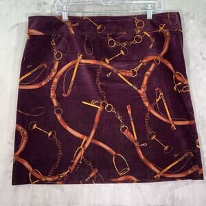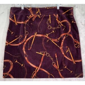 Talbots Equestrian Horsebit A-Line Corduroy Skirt Size 16 Burgundy Preppy Career