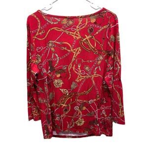 Talbots Equestrian Print Red Drape Neck Long Sleeve Jersey Size L