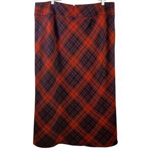 Talbots Established 1947 SZ 18W Wool Blend Red Tartan Midi Skirt Front Box Pleat