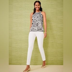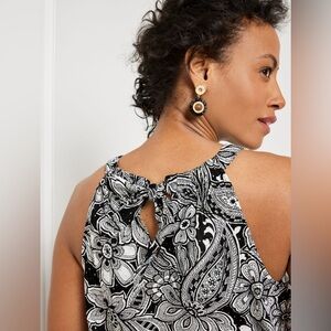 Talbots Etched Paisley Halter Top Size XL $79 Metallic Coastal Black White Gold