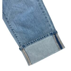 A relaxed silhouette with just the right amount of stretch. Relaxed leg, hits at the waist, ankle length, fly front with button closure, five pocket, cuffed hem. 99% cotton, 1% lycra spandex. Selene wash. Size 10P. Please see photos for measurements.