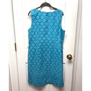 Talbots Eyelet Lace Shift Dress Blue Sleeveless Lined 100% Cotton Size 16 Petite