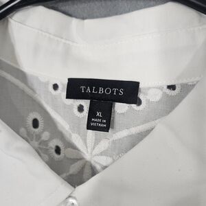 Talbots Eyelet Lace XL Button Up Cotton Top Collared Shirt Tunic 100% Cotton