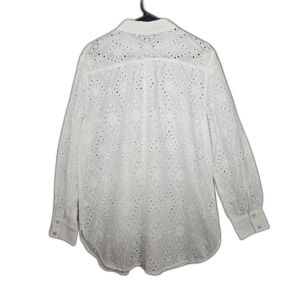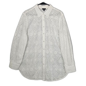 Talbots Eyelet Lace XL Button Up Cotton Top Collared Shirt Tunic Legnth