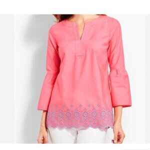 Talbots Eyelet Poplin Embroidered Scalloped HemTunic