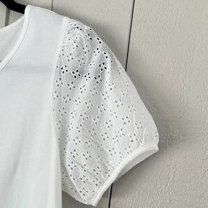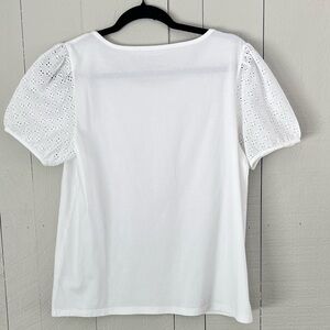 Crisp cotton white top by Talbots. Features stylish eyelet short sleeves.