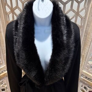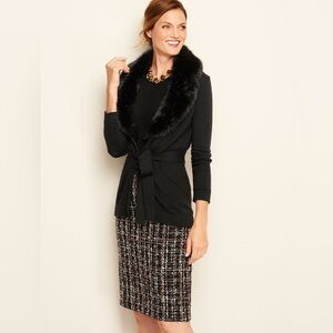 Talbots FAUX-FUR COLLAR (removable) MERINO CARDIGAN Size Large